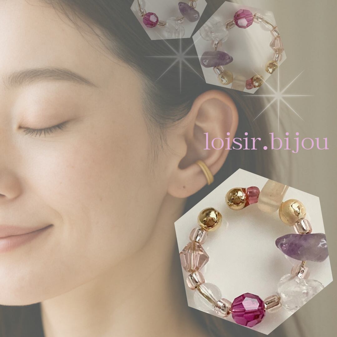 【耳ツボイヤーカフ】ガーネット・アメジスト・クリスタル・マザーオブパール・ムーンストーン