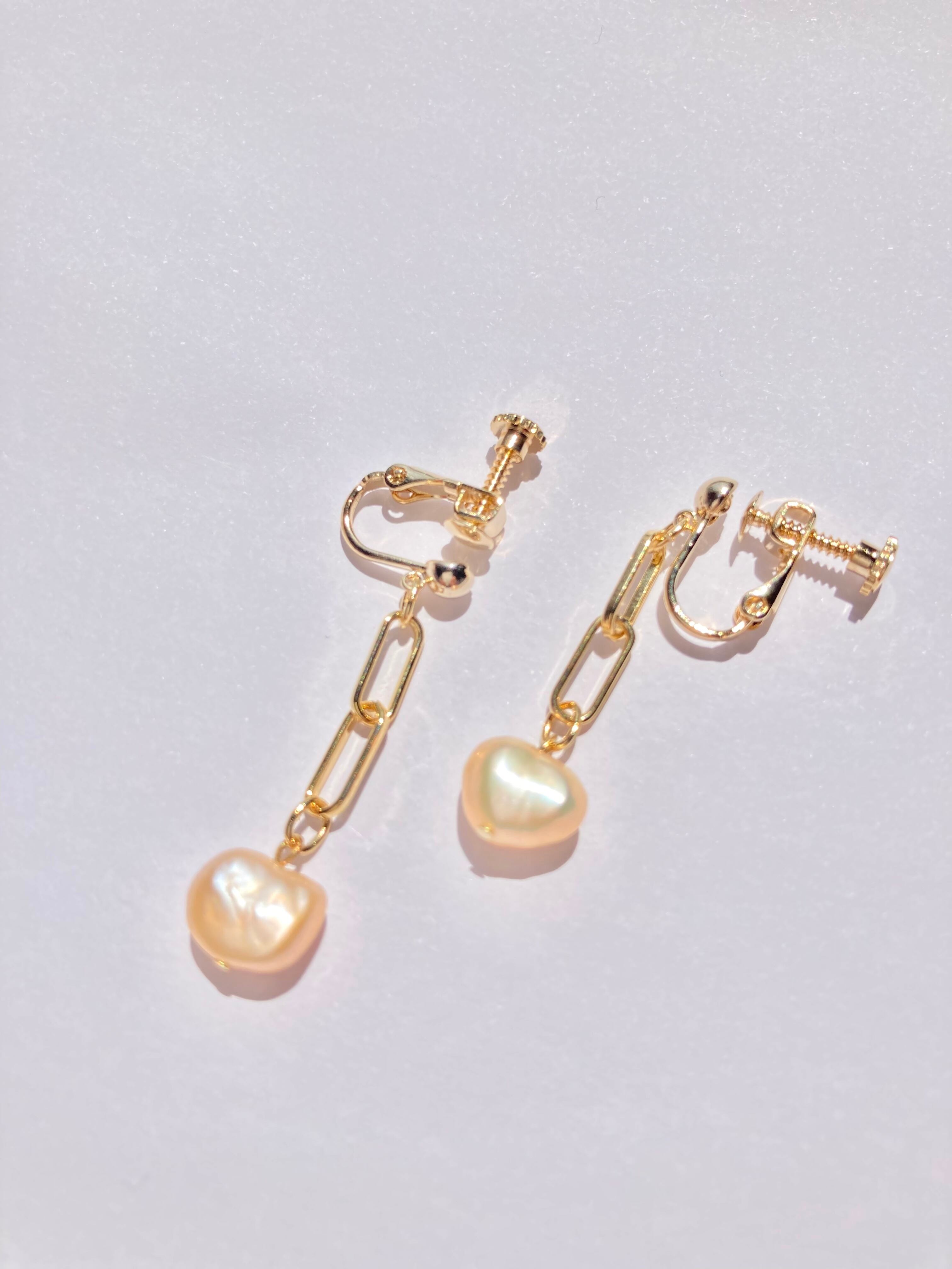 淡水パールの耳飾り*ネジバネ式イヤリング